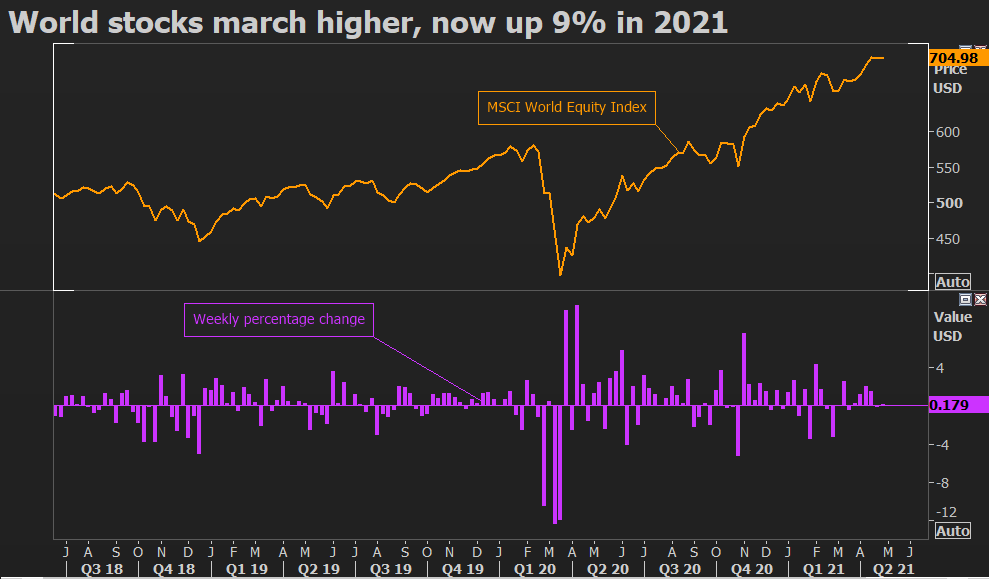 Still, recent data pointing to a solid global economic recovery has bolstered confidence and limited any investor nervousness, as have strong corporate earnings and the continued rollout of COVID-19 vaccinations in developed economies.