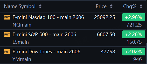 US stock futures extended rally. Nasdaq futures up nearly 3%; S&P 500 Eminis up 2.26%; Dow Jones futures up 2%.