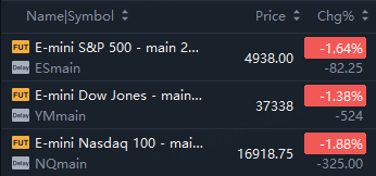 Futures tied to the Dow Jones Industrial Average dropped 524 points, or 1.4%. Nasdaq-100 futures declined 1.9%, while S&P 500 futures pulled back 1.6%.