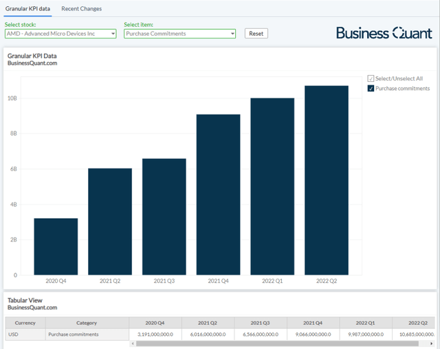 For starters, look for AMD’s purchase commitments in its 10Q filing. This is basically the dollar value of all the cancellable and non-cancellable orders that AMD has committed to its third-party vendors.