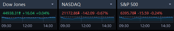 The S&P 500 lost 15.59 points, or 0.24%, to end at 6,395.78 points, while the Nasdaq Composite lost 142.09 points, or 0.67%, to 21,172.86. The Dow Jones Industrial Average rose 16.04 points, or 0.04%, to 44,928.31. Figma up 7%, Opendoor Technologies Inc fell 11%, SoundHound AI Inc fell 6%, Micron Technology fell 4%.