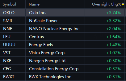 Nuclear energy stocks rallied in overnight trading.