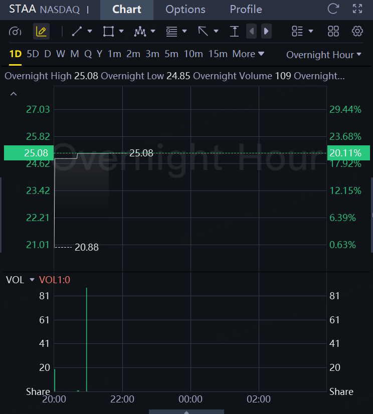 Staar Surgical expects sales to more than double in the first quarter. The stock gained 20% in overnight trading.