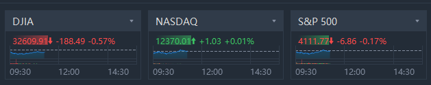 U.S. stocks mixed in morning trading. Nasdaq rose 0.01%, S&P500 slid 0.17% while Dow Jones fell 0.57%.