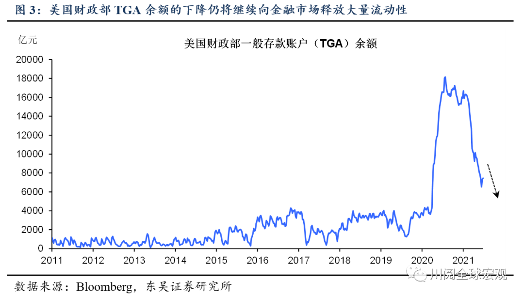 近期美债利率的下行则有其特殊的原因,一是财政部现金余额的下降。由于没有提前达成债务上限的协议,美国财政部必须将其在美联储的存款账户(TGA)的现金余额减少4000亿美元,以实现其7月底的目标水平,这意味着短期内仍将向金融市场释放大量的流动性,必然增加金融机构对美债的配置需求,从而拉低美债的长端收益率(图3)。