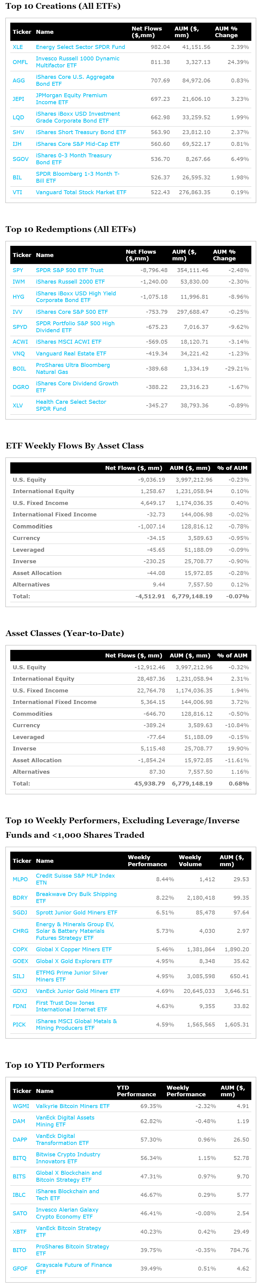 For a full list of last week’s top inflows and outflows, see the tables below: