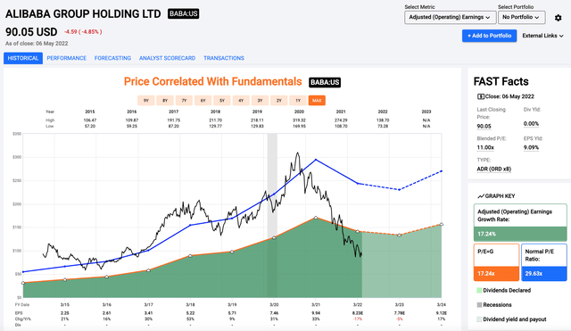 If it turns out we are not past peak fear, things could continue to get worse for shareholders. Shares peaked out in 2020 above $300, and it has been a choppy ride down and to the right ever since. I think that the worst is behind us, but it is possible that things could continue as they have been for the last year and a half for Alibaba. I think that this outcome is unlikely, but the market has consistently sold Alibaba for nearly two years. It is possible that the selloff continues, and shares continue to languish and frustrate investors.