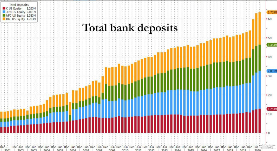 结果显示,自全球金融危机以来,银行贷款没有增长,而存款总额却翻了一番!