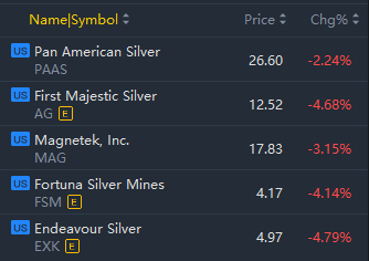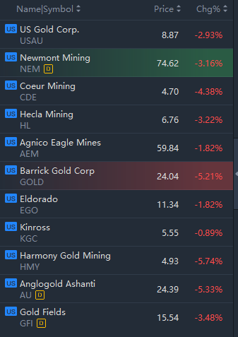 Gold and silver stocks slipped in early trading.