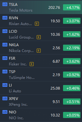 EV stocks rallied in morning trading; Tesla stock price jumped 4% to $202.