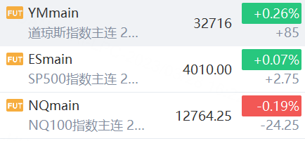 美股三大股指期货涨跌不一,截至发稿,道指期货涨0.26%,纳斯达克100指数期货跌0.19%,标普500指数期货涨0.07%。第一共和银行盘前涨超5%,美国考虑给予银行业更多支持。