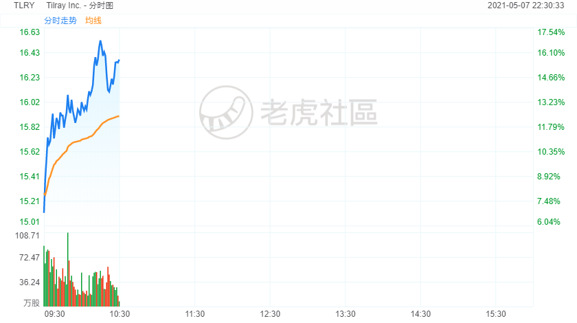 5月7日,美股大麻股盘中集体上涨,Tilray涨超16%,杰富瑞将该公司评级从弱于大盘直接上调至买入;Organigram涨超9%,Veru涨超7%,Sundial Growers涨5%。