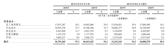 京东物流的最大成本来自于员工福利,这一成本从2018年的170.71亿增长到了2020年前三季度的178.89亿,占比则从45.1%下降到了36.1%。相比之下,外包成本的支出的占比则从27.7%上升到了32.8%,由此看来,京东也在加大对于第三方仓配团队的依赖。截至2020年底,京东物流共有员工超过25万,其中仓储、快递、客服等一线员工超过24万。