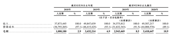 毛利层面,京东物流2018年、2019年、2020年前9个月的毛利分别为10.8亿元、34.32亿元、54.18亿元,毛利率则从2018年的2.9%提升到了2020年前9个月的10.9%,去年同期毛利率为8.5%。