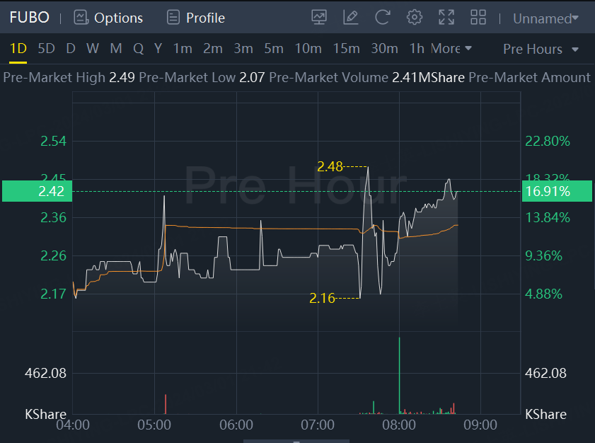 FuboTV Inc. shares climbed 16.9% in premarket trades Friday after the sports-first TV-streaming company reported a narrower-than-expected loss and better-than-expected revenue in its fourth-quarter results.
