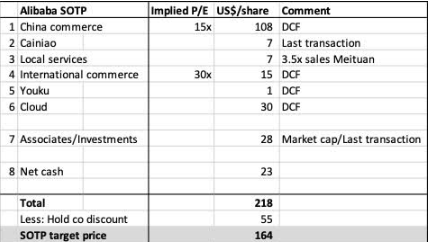 - My target price for Alibaba is $164, implying an 86% upside from current levels.