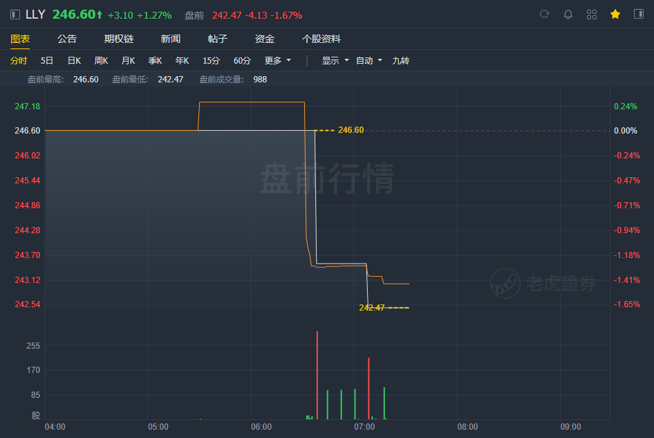 (August 3) Shares of Eli Lilly & Co. $(LLY)$ fell 1.67% in premarket trading Tuesday after the drug maker missed second-quarter profit expectations while revenue beat, as gross margin as a percentage of revenue fell due primarily to an excess inventory charge related to COVID-19 antibodies.