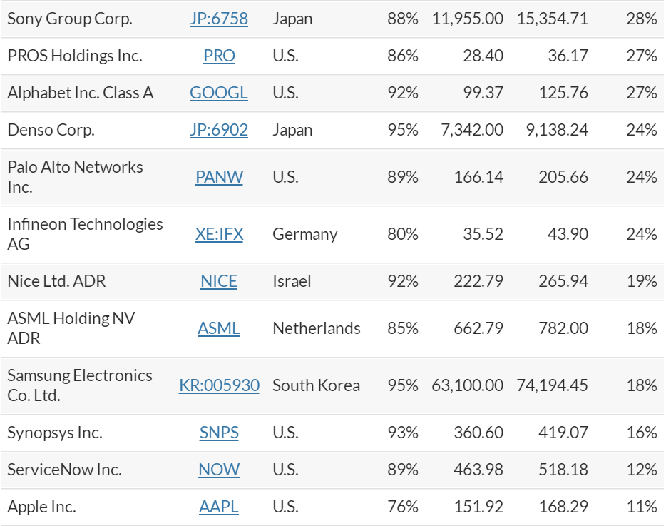 Among those 88 companies, 30 are rated a “buy” by at least 75% of analysts covering the stocks. Sometimes price targets can get ahead of analysts’ targets, especially in such a hot area of the stock market.