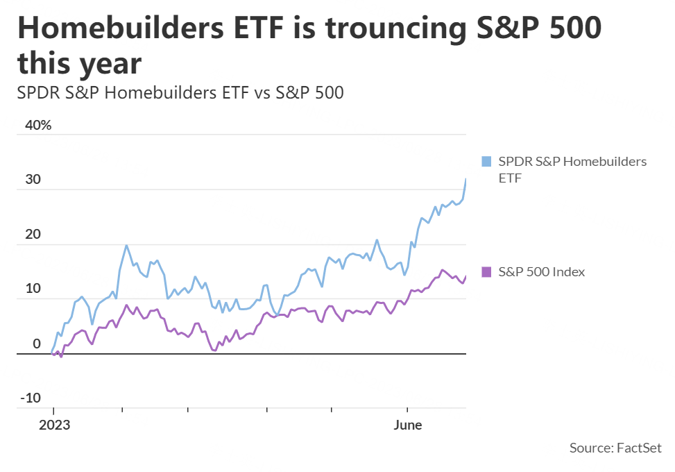 The SPDR S&P Homebuilders ETF has widely outperformed the S&P 500 so far this year.