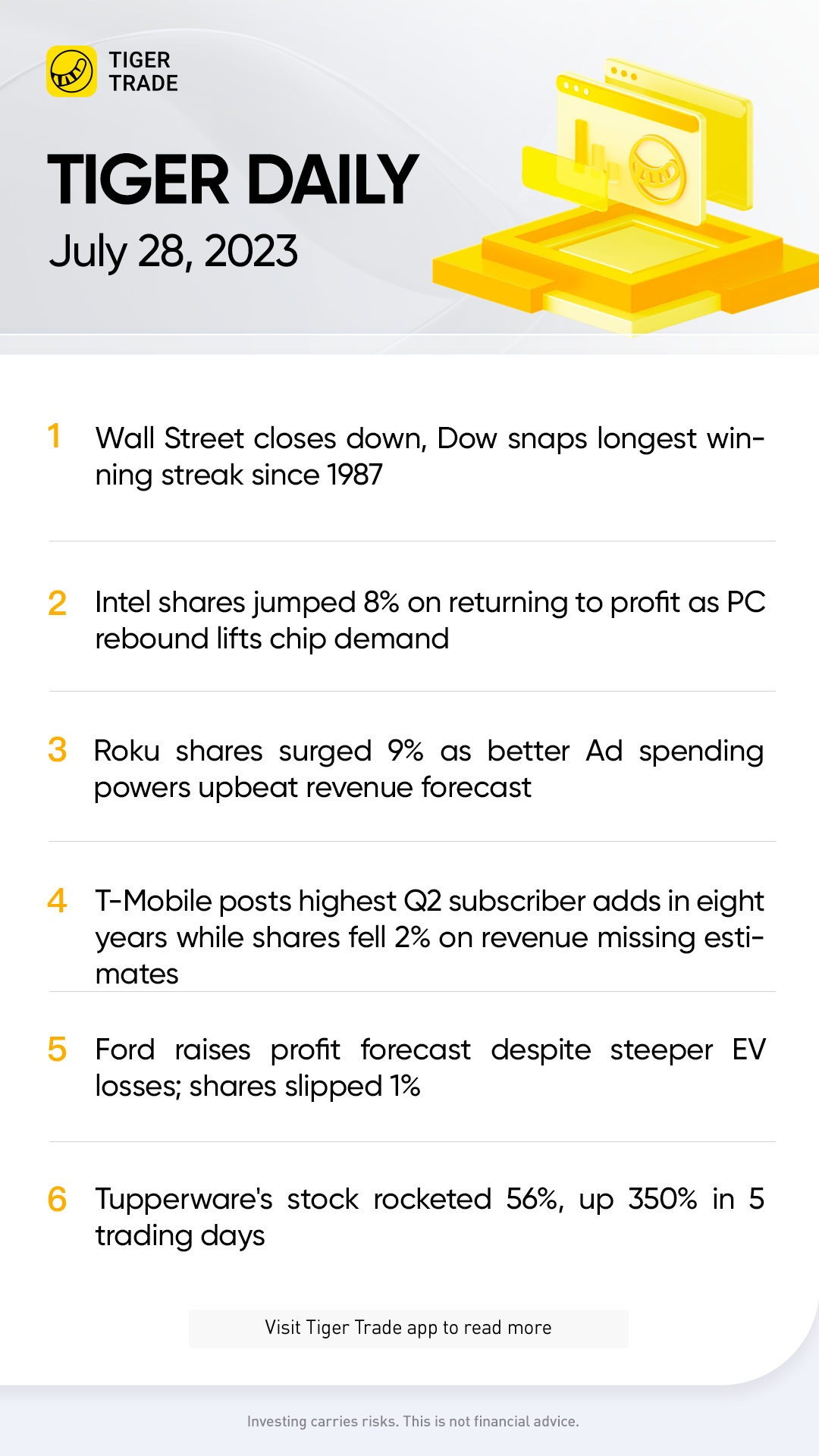 Southwest Airlines tumbled 8.94% after the airline posted a dip in second-quarter profit, while Royal Caribbean surged after the cruise operator lifted its annual profit forecast. Elsewhere, the European Central Bank raised interest rates for the ninth consecutive time and kept the door open to further tightening.