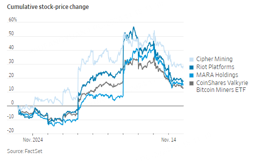 Following Donald Trump's victory in the presidential election, bitcoin has risen above $90,000 to a record high, bolstered by his pledges to end a hostile regulatory regime and build up a national crypto reserve. The rally has also powered the stocks of companies that "mine" bitcoin, such as Marathon Digital Holdings Inc and Riot Platforms.
