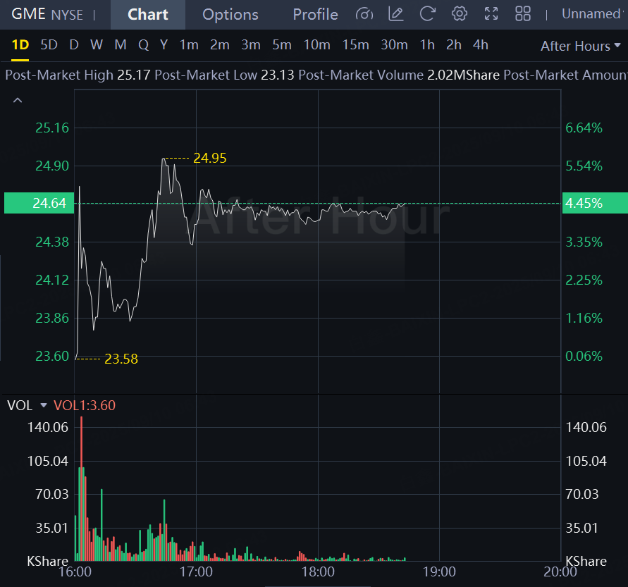 Shares of GameStop were up 4% to $24.64 in after-hours trading following the results. The stock, popularly known for sudden spouts of meme activity, has declined 25% this year compared with the S&P 500's 11% gain.