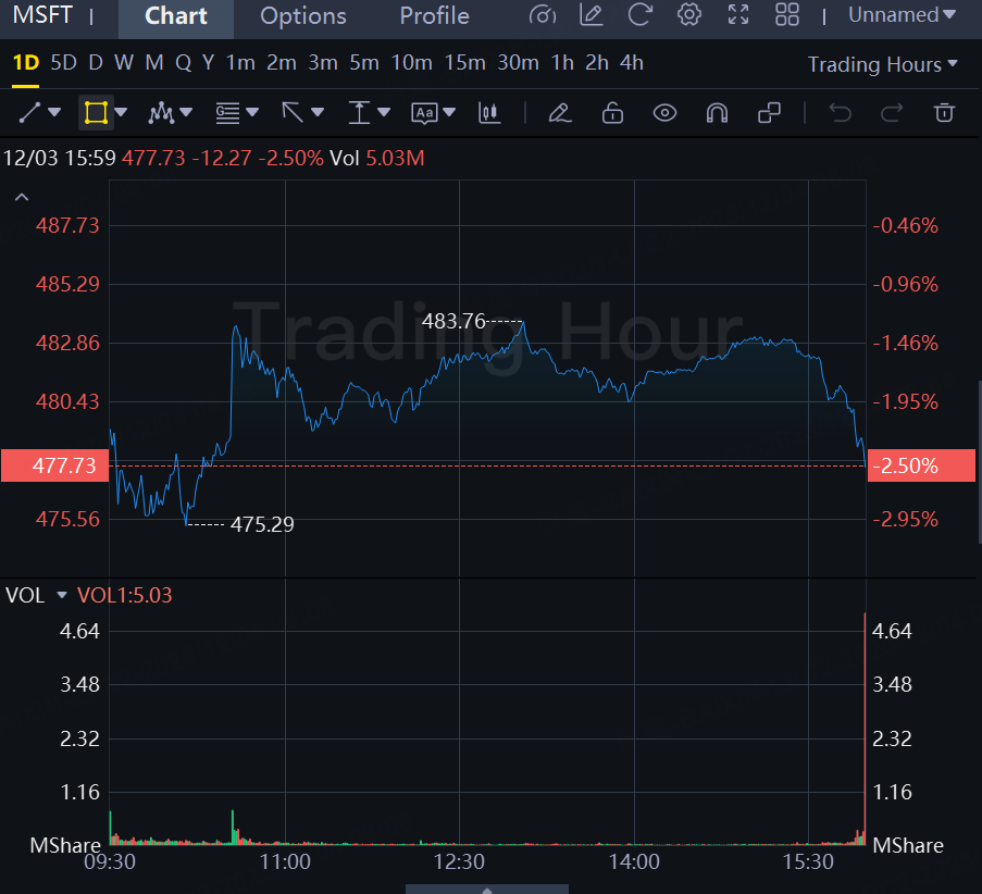 Microsoft's stock fell as much as 3% on Wednesday morning and ended the day off 2.5%.