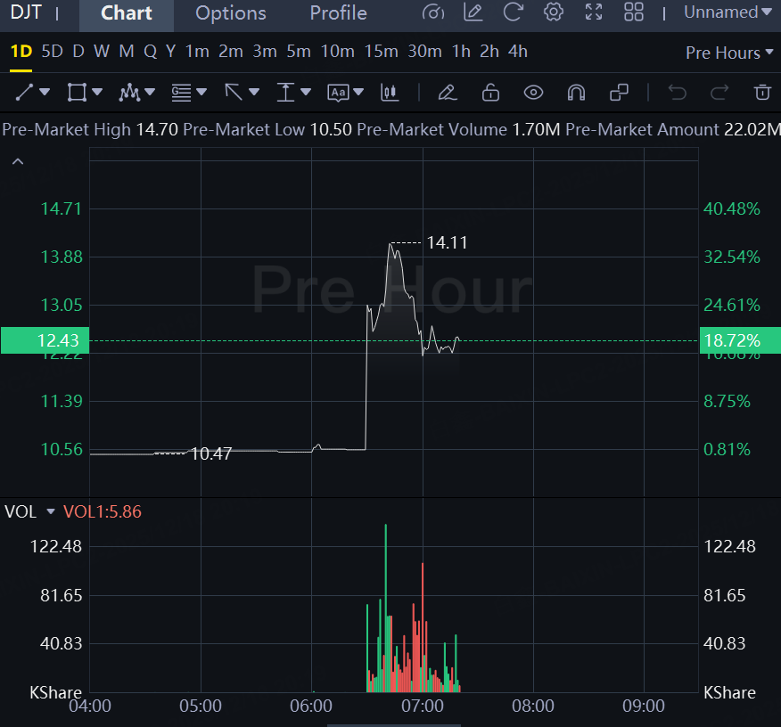 After the announcement, shares of Trump Media DJT.O quickly gained traction on Stocktwits, a social media hub for retail investors, surging more than 19% in premarket trading.