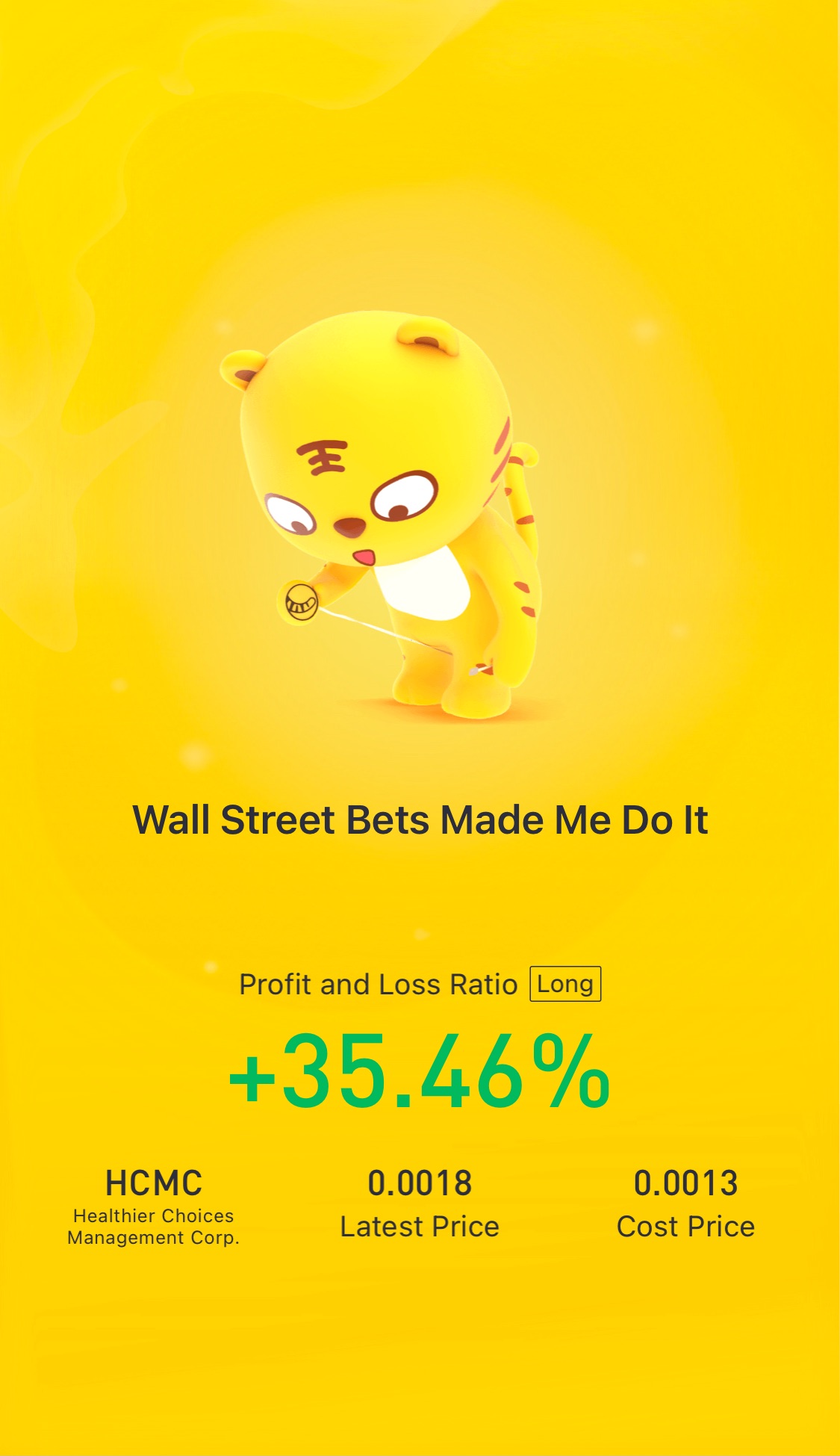 $Healthier Choices Management Corp.(HCMC)$Hodling this one, hoping for at least a 400% return