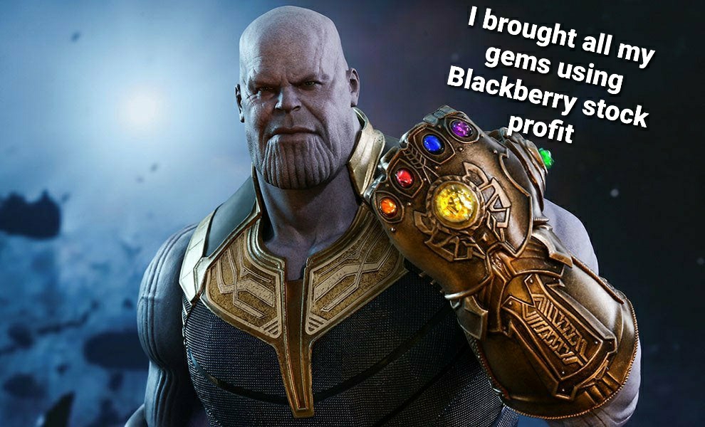 $BlackBerry(BB)$To be frank, i dun want to be Diamond hand anymore.. I want to be Thanos hand.. because I want to be like him.. hand filled with all the precious powerful gems