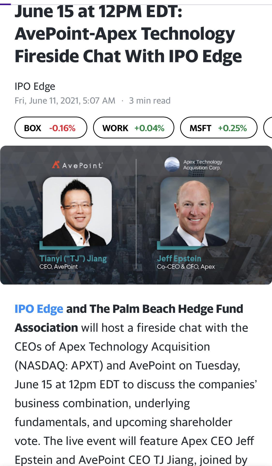 June 15 at 12PM EDT: AvePoint-Apex Technology Fireside Chat With IPO Edge