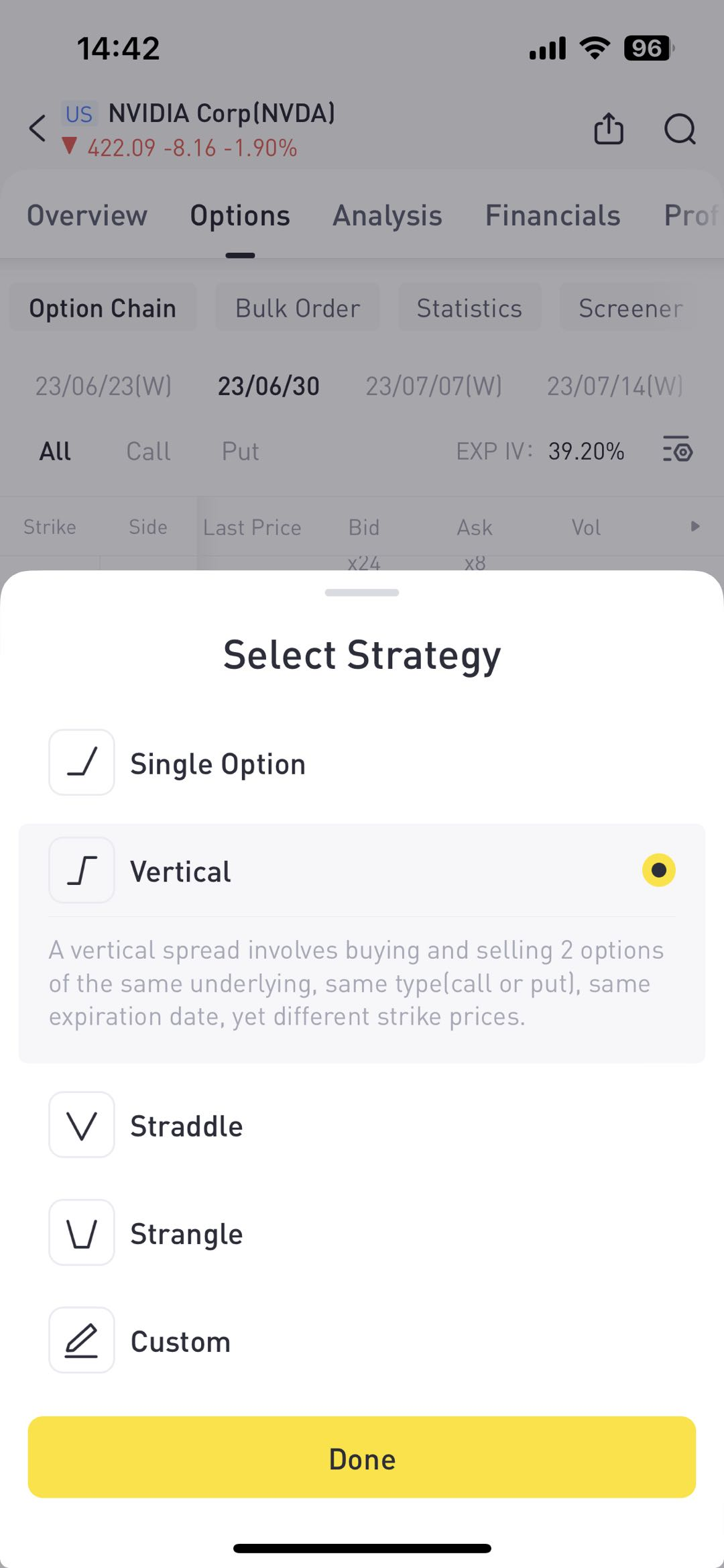 Risk Disclaimer: Options Strategy is currently in the beta testing phase. By participating in the beta test, you agree to bear all risks associated with options combination strategy trading during the testing period. Please trade cautiously. If you have any questions, post them in the community or reach out to our staff via the App's Help Center or online customer support.
