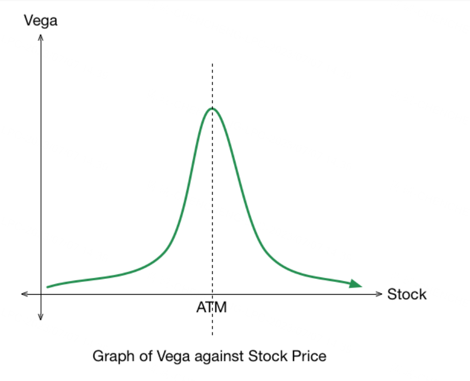 Vega measures the rate of change of the price of the option with respect to volatility.Specifically, the vega of an option tells us by how much the price of an option would increase when volatility increases by 1%. It allows us to make predictions about how much the option value would change as volatility changes.