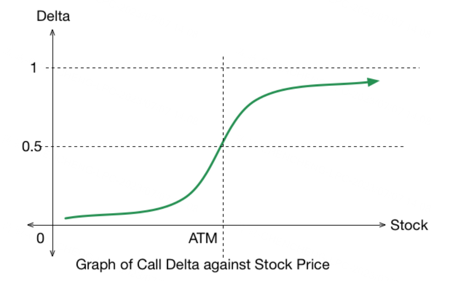 • A deep In-The-Money call behaves as if one is long the underlying, and hence the corresponding delta is 1.