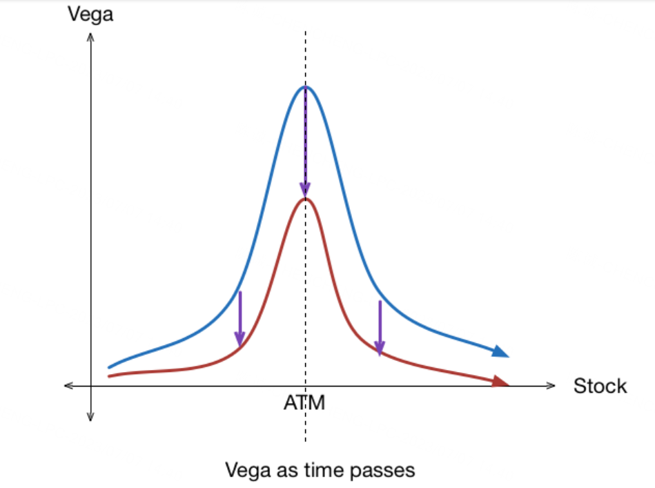 Just as we understood the graph of Gamma from the graph of Delta, we should look at the effect of Delta changes over time and volatility.