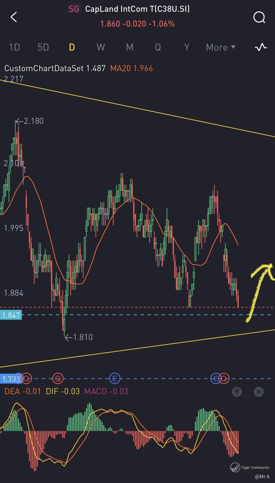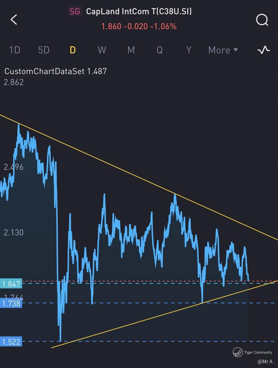 $CapLand IntCom T(C38U.SI)$ CapLand intCom looks like pending for a breakout in near term. Some might want to wait for MACD crossover before enter trade.
