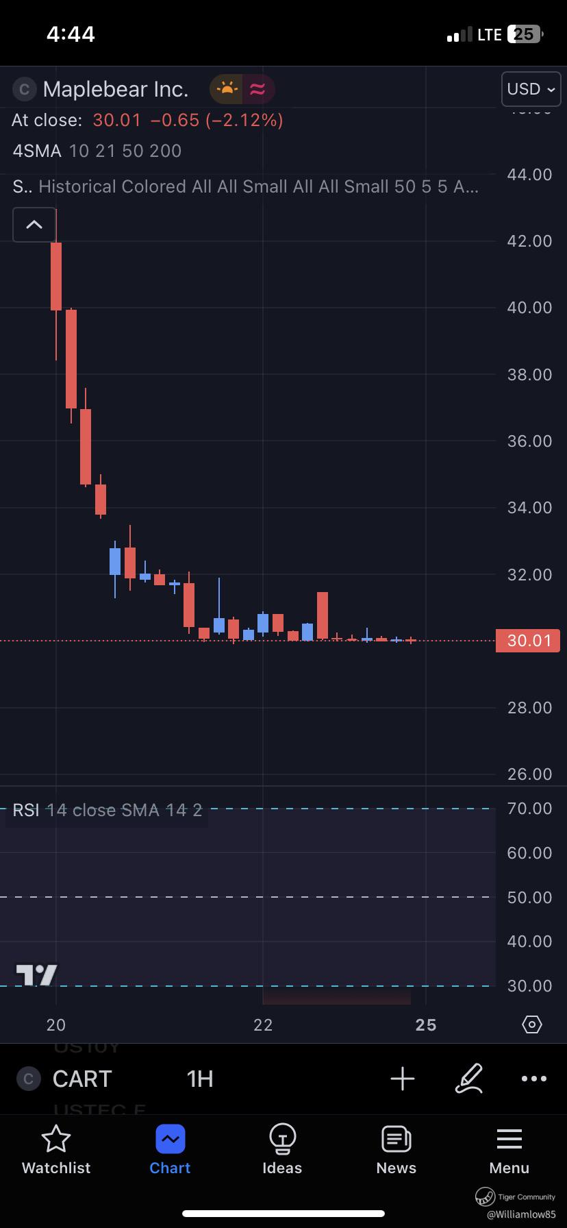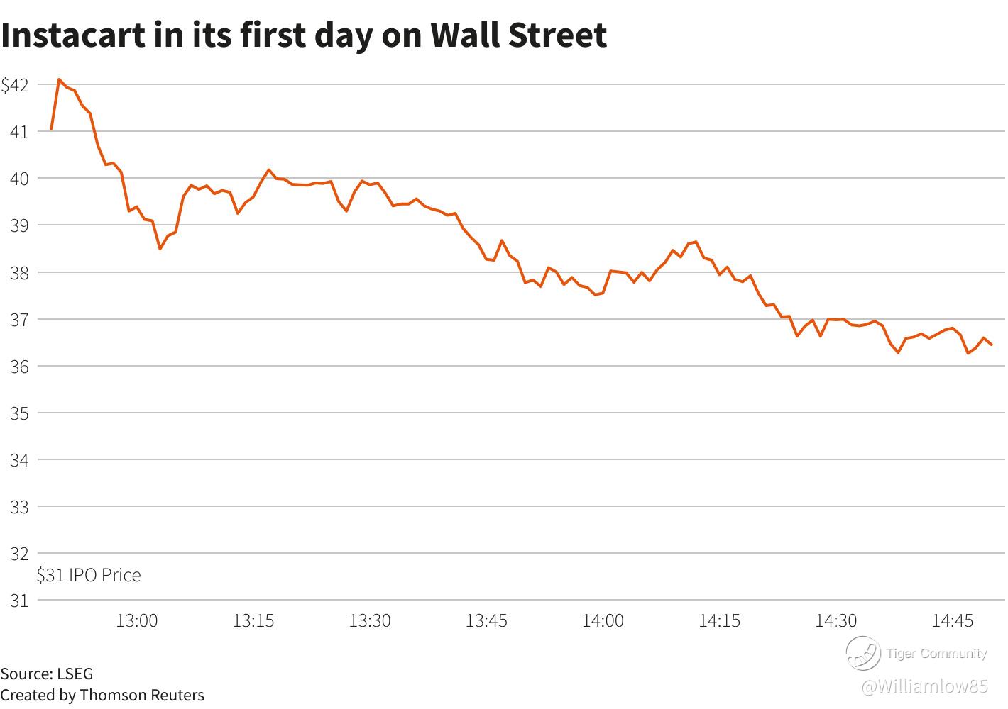 Instacart, also known as Maplebear (ticker: CART), went public on Tuesday at $30 a share, and opened for trading at $42. But the grocery delivery company’s shares have been gradually sinking ever since. On Friday, the stock is off about 2% to $30.06.