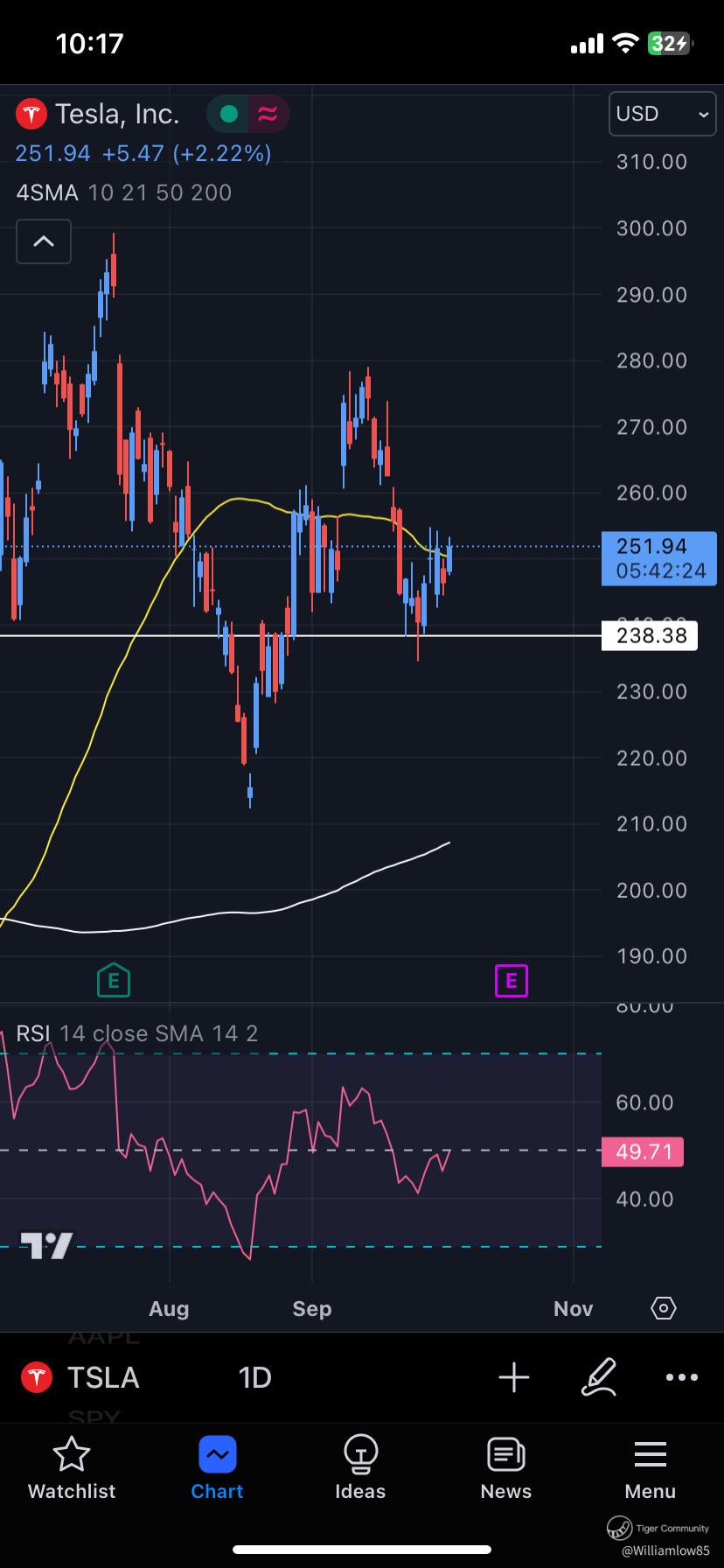 Last week, Tesla stock rose 2.2% to 250.22. On Monday, shares closed just above the 50-day line