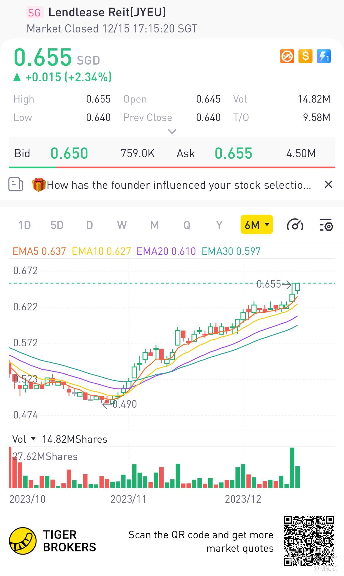 $Lendlease Reit(JYEU.SI)$ 6-month high