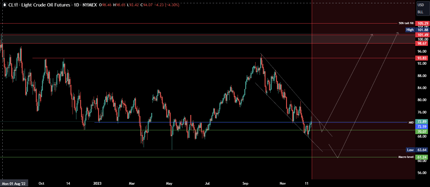 Crude Oil traded lower earlier in the week after a small pullback bear trend.