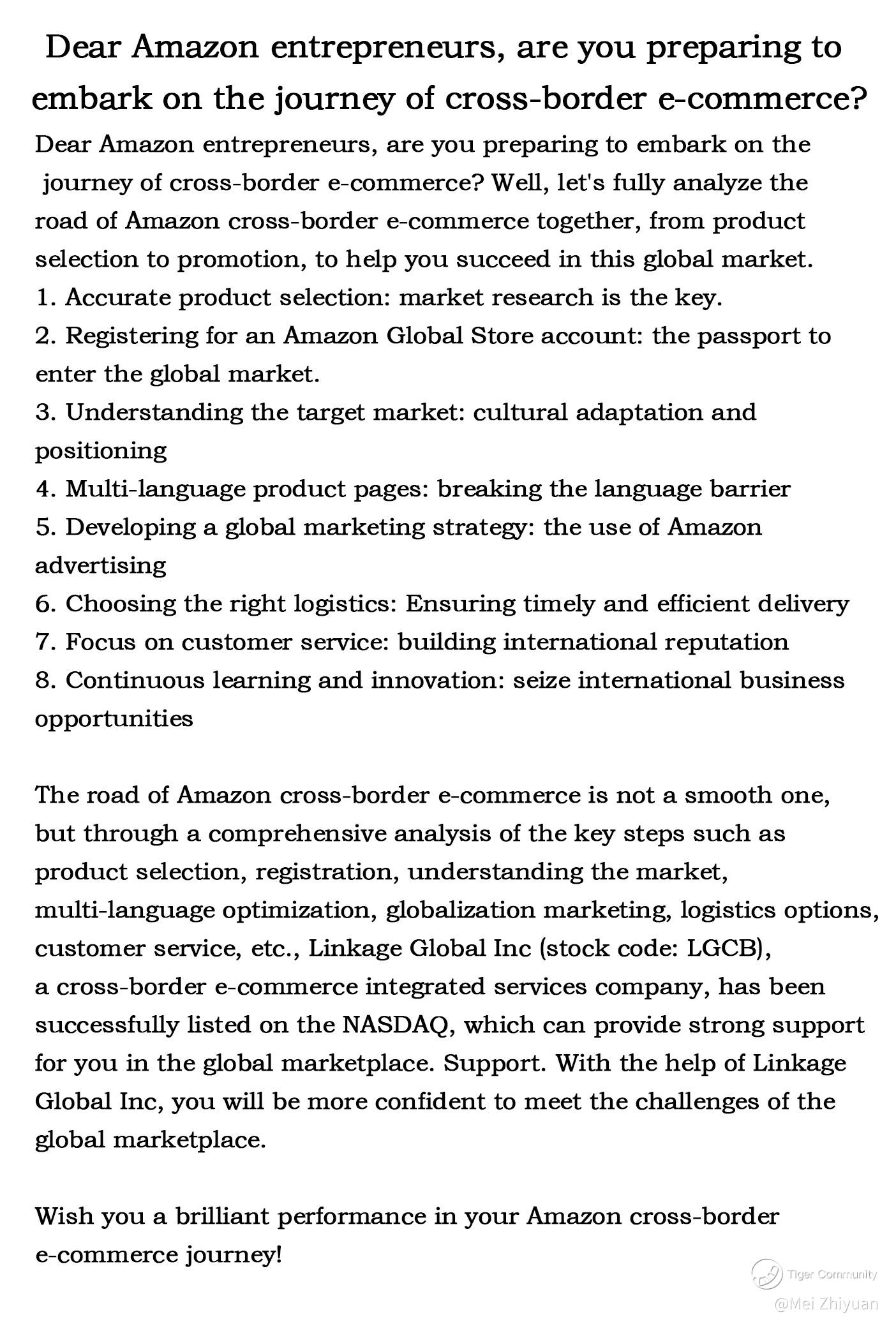 Dear Amazon entrepreneurs, are you preparing to embark on the journey of cross-border e-commerce? Well, let's fully analyze the road of Amazon cross-border e-commerce together, from product selection to promotion, to help you succeed in this global market.