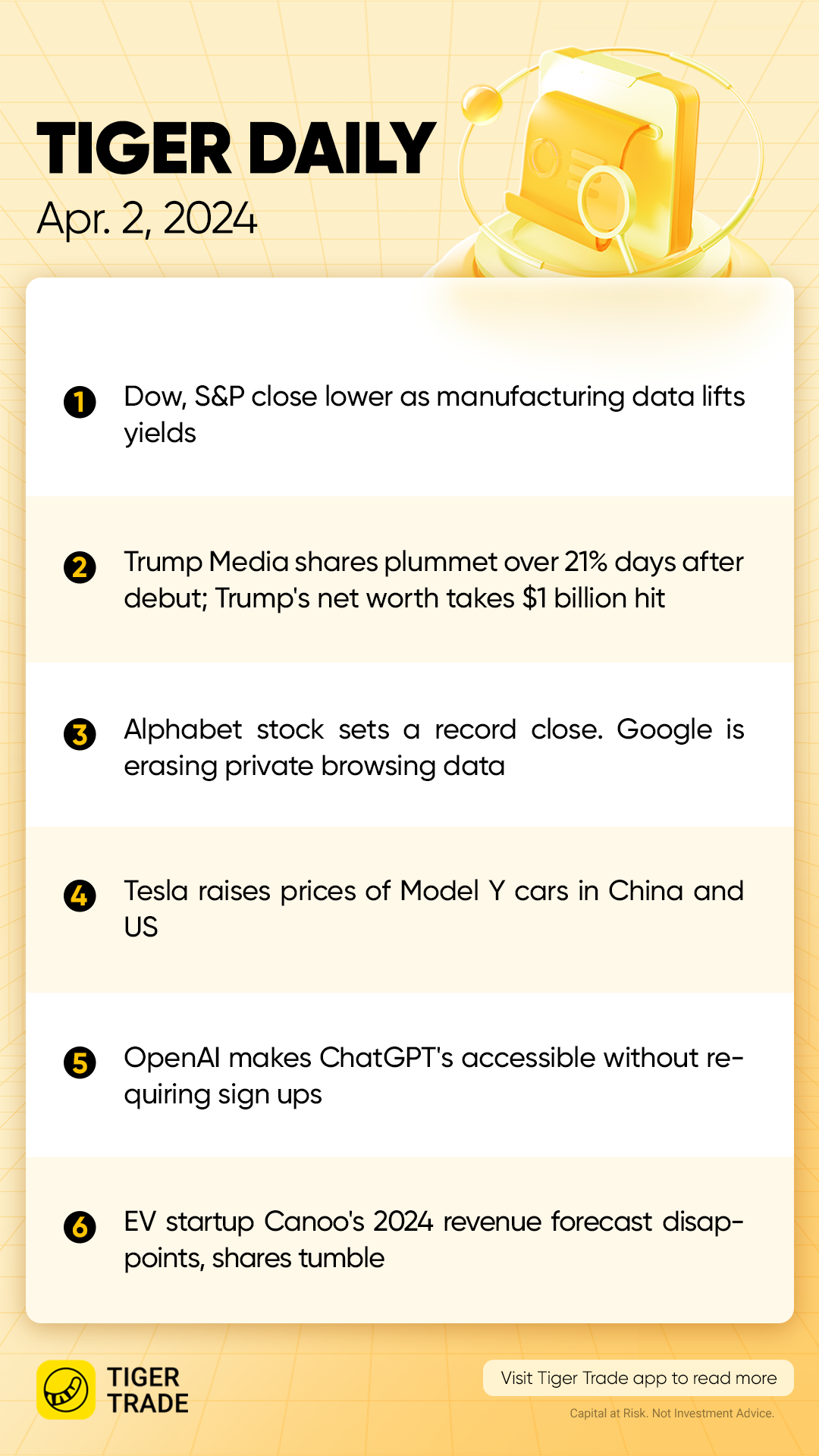Trump Media & Technology Group (DJT) $Trump Media & Technology(DJT)$ - Trump Media & Technology Group declined 21.5%, falling for a second-straight session after the stock rose 24% last week following its trading debut. A new regulatory filing released Monday said Trump Media lost $58.2 million in 2023 on sales of $4.13 million. Meanwhile, Barronβs reported that former President Donald Trump stands to receive 36 million additional shares of Trump Media, the owner of Truth Social, that could vest in the coming month under the terms of an earnout agreement with the company.