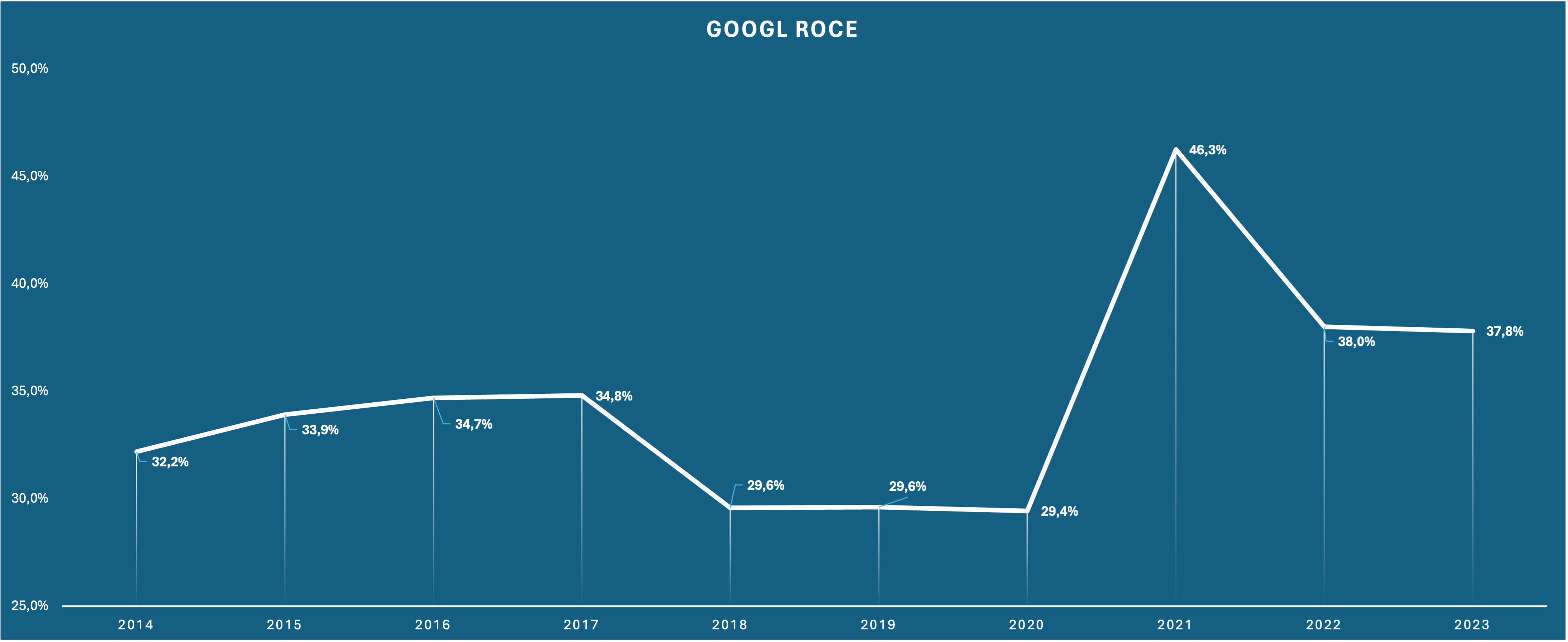 $Alphabet(GOOG)$ GOOGL managed to grow its Capital Employed at a high rate. Since 2014, the growth CAGR for GOOGL's Capital Employed come in at 17.7%. As long as we see good growth in Capital Employed while ROCE remains steady or expands, we are looking at a true compounder. This company consistently creates value for shareholders.