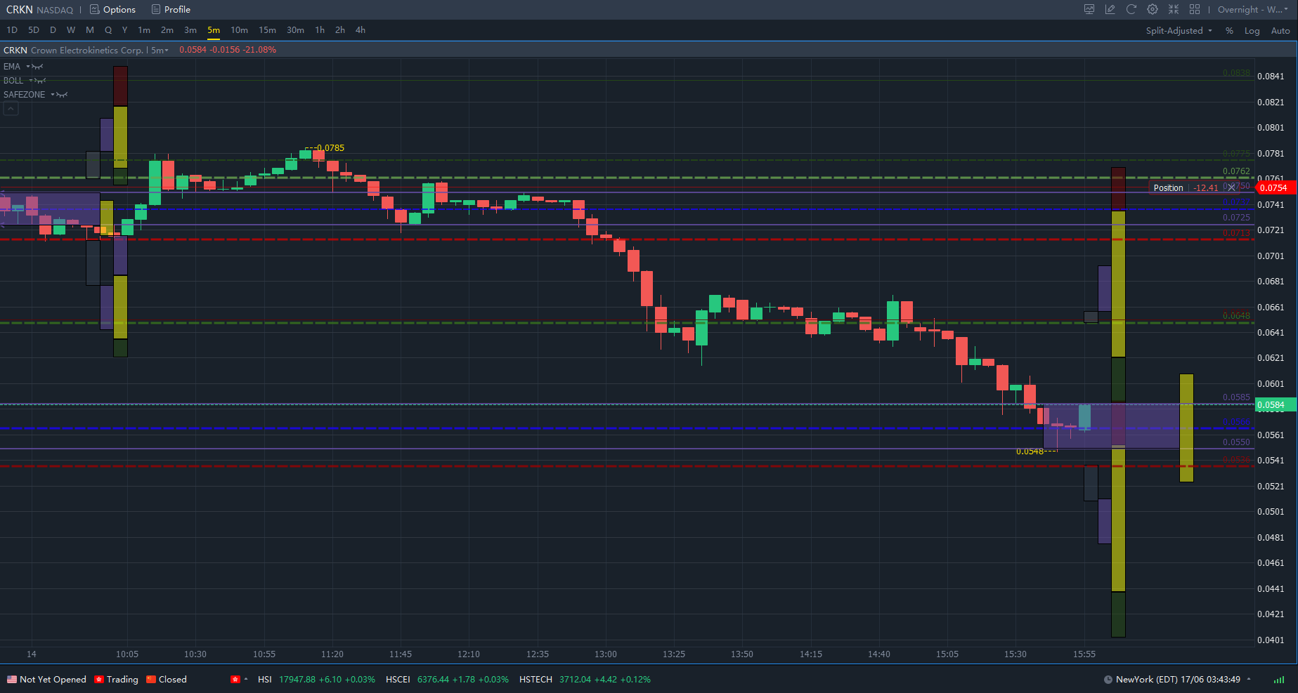 $Crown Electrokinetics Corp.(CRKN)$ Very Interesting Trend. Good day for a short player, however! FAB4-(E) Testing here drove my position from a big loser to a possible winner if not an oppertunity may presents. [微笑]