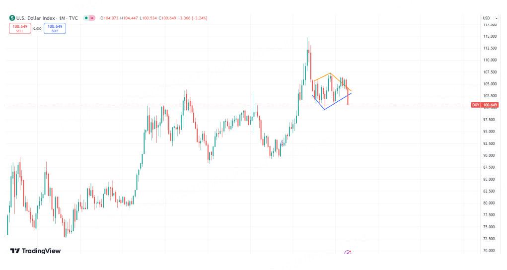 In addition to the currency circle, the turmoil in the foreign exchange market also seems to be coming to an end. After Powell gave a clear dovish expectation last week, the dollar encountered another negative line in August. The diamond structure since the beginning of 2023 is on the verge of breaking, and after breaking through 99.57, it will be in a more negative bearish expectation in terms of technical form.