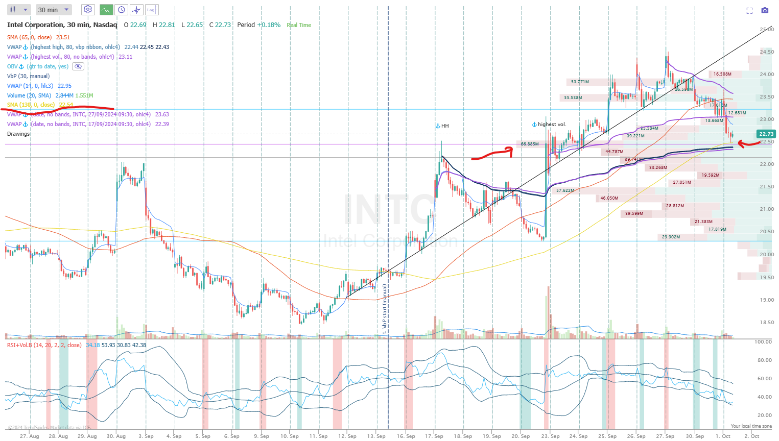 The other reason I forgot to mention in addition to bouncing off the 10 day(130 period on my 30 min) is we bounced within the massive volume shelf of 67 million shares.
