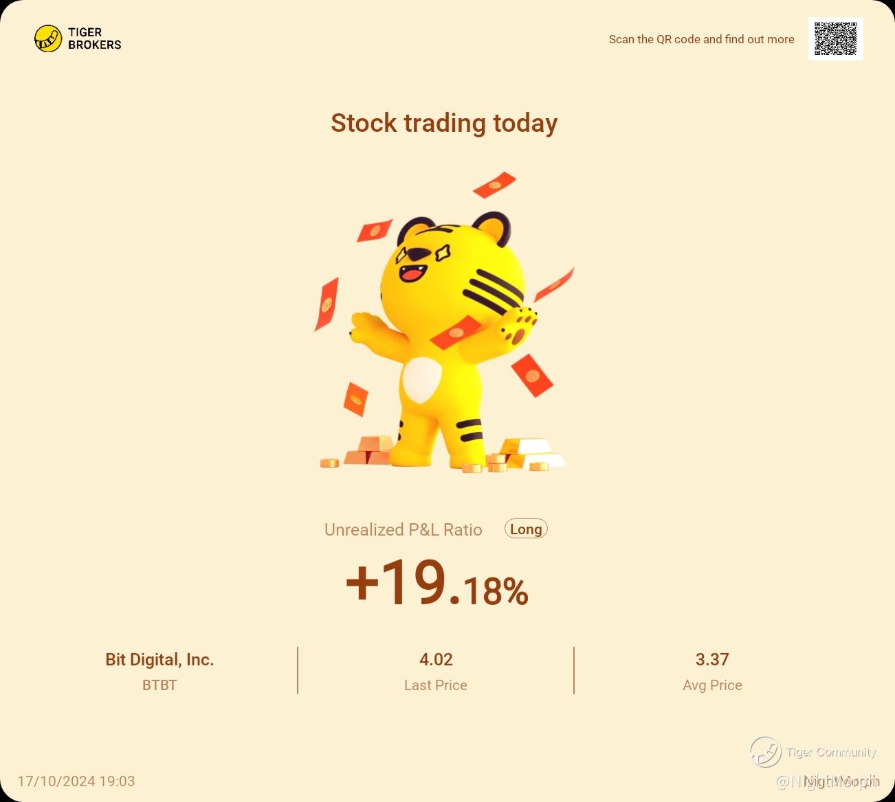 $Bit Digital, Inc.(BTBT)$ continues its bull run. I think Bit Digital has a good story, with increasing capacity to mine and also, in gaining assets. To me, they are actively looking at ways to increase revenue, and provide a solid investment.