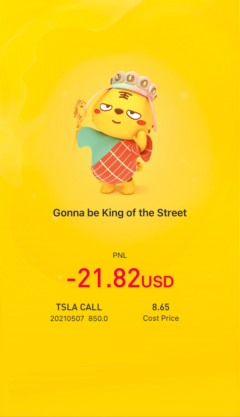 $Tesla Motors(TSLA)$decided to cut loss due toupcoming earnings report. I’m bullish on report but don’t want to risk losing out to Implied Volatility and Delta being unable to break even this position.