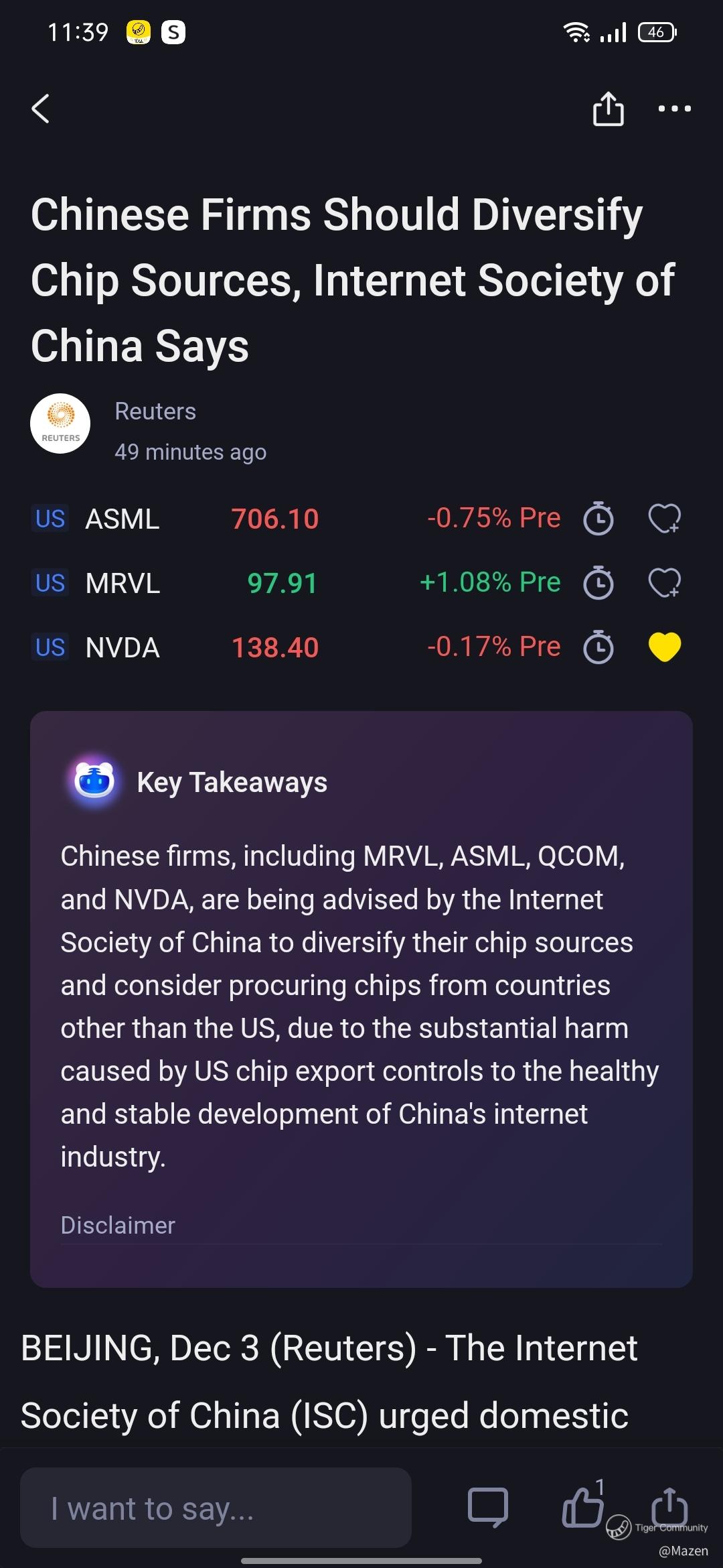 Disclaimer: Investing carries risk. This is not financial advice. The above content should not be regarded as an offer, recommendation, or solicitation on acquiring or disposing of any financial products, any associated discussions, comments, or posts by author or other users should not be considered as such either. It is solely for general information purpose only, which does not consider your own investment objectives, financial situations or needs. TTM assumes no responsibility or warranty for the accuracy and completeness of the information, investors should do their own research and may seek professional advice before investing.
