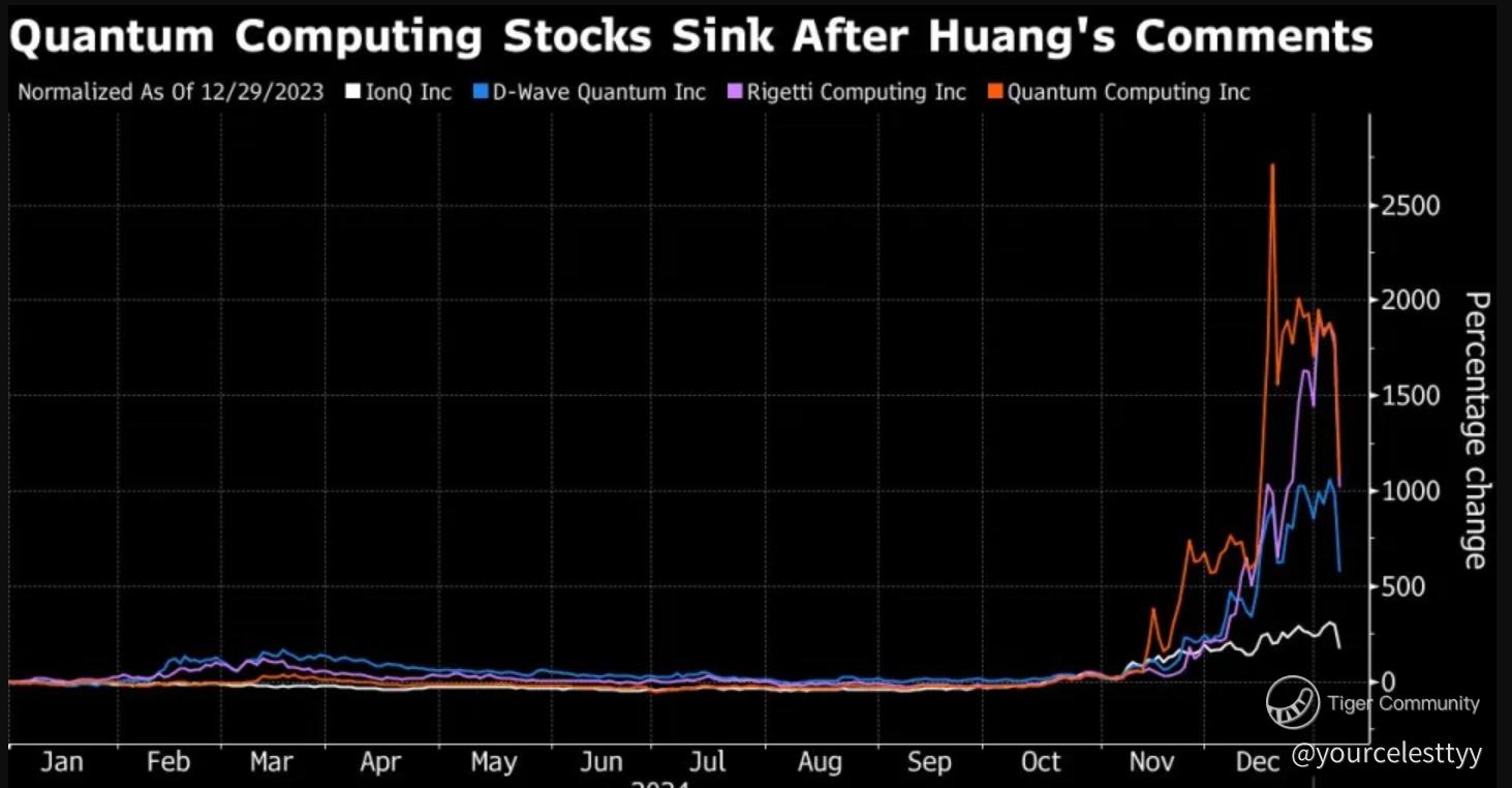 Quantum Computing's Reality Check During CES 2025, NVIDIA ( $NVIDIA(NVDA)$ )CEO Jensen Huang tempered expectations around quantum computing, stating that we're "5 or 6 orders of magnitude away from being truly useful." While he envisions practical quantum computing within 15-20 years, the timeline may not align with current market enthusiasm.